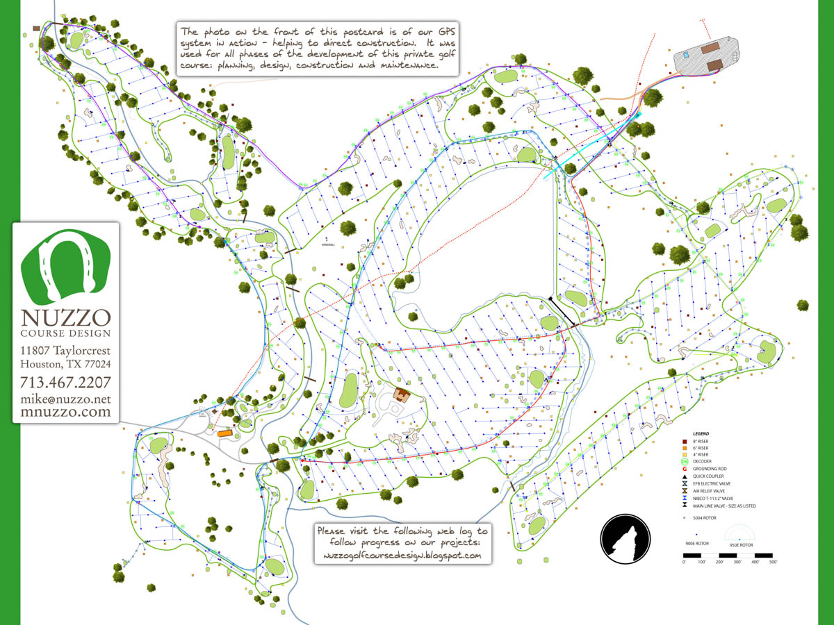 Routing #10. #2 + #11 connect fairways and 15-17 are now counterclockwise. Finally hit 100 hundred bunkers on this plan, Al was pleased.